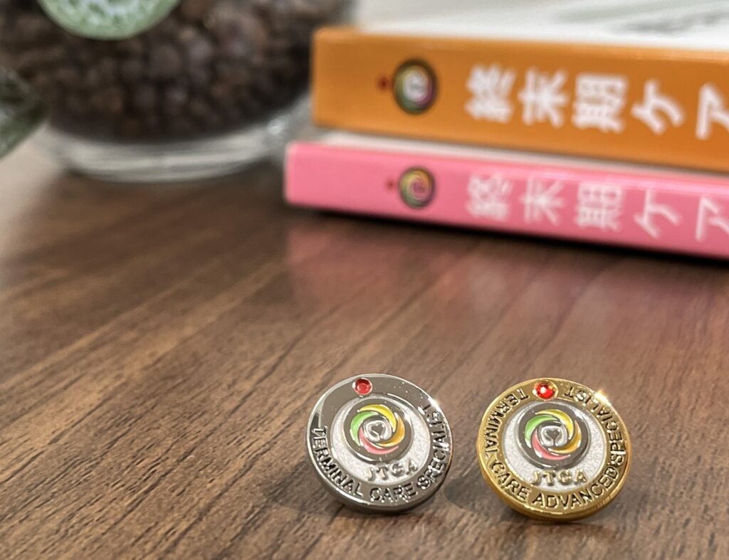 終末期ケア専門士や上級専門士を取得すると、バッジがもらえる※のですが、私はそれを名札につけて働いています。