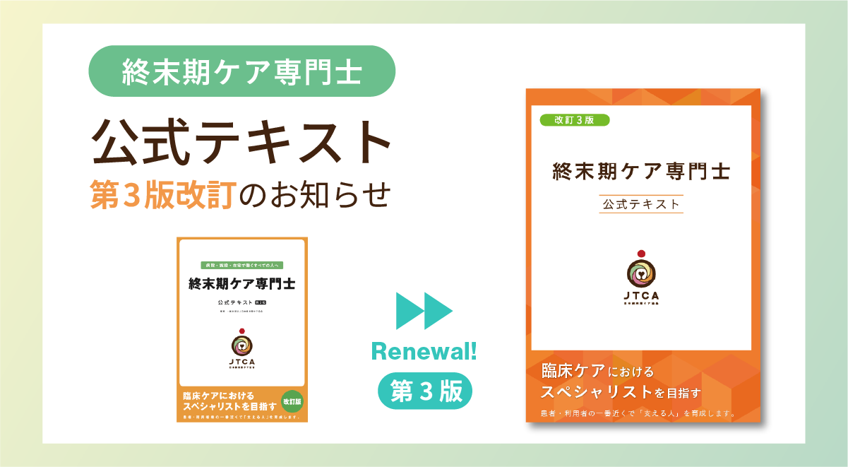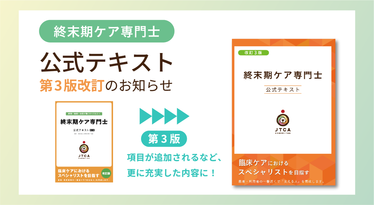 この度、終末期ケア専門士の公式テキストを【第3版】へ新たに改訂いたします。