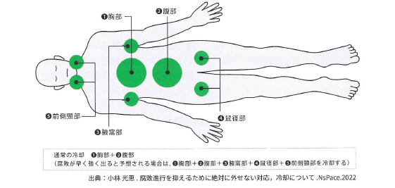 現場でエンゼルケアを行い、葬儀会社に引き継ぐまでに重要な役割が「冷却」です。腐敗を最小限に抑えるために、医療従事者が行える最も有効的な手段です。