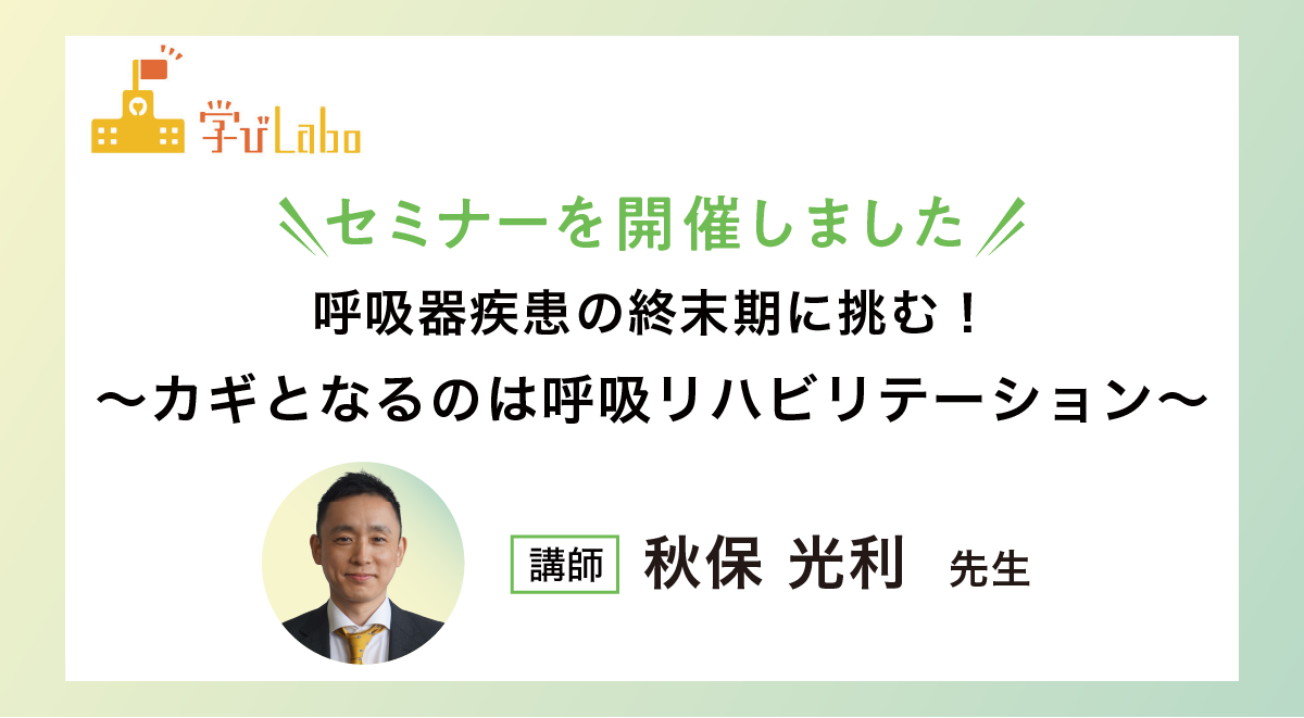 今回の学びLaboでは、東京医療学院大学の秋保光利先生をお迎えし、呼吸器疾患の終末期におけるリハビリテーションのあり方について学びました。