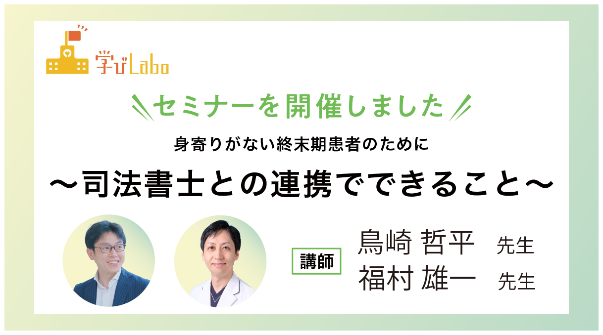 「身寄りがない終末期患者のために~司法書士との連携でできること~」【学びLabo】
